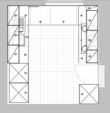 das ist ein guter Vorschlag mit dem L unter dem Fenster fortlaufend und dann die beiden Hochschränke (Kühli und Ofenkombi) die dunkle Ecke ( links neben der Tür)und nur die erhöhte Spülmaschine in die Ecke gegenüber der Türseite. Dann würde sogar noch die alte Tür reinpassen. :goodjob: