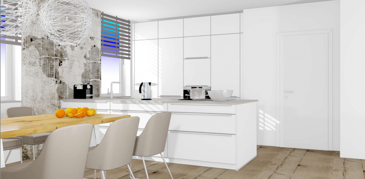 Das stimmt schon, tatsächlich ist einfach der "Eingangsbereich" eine kritische Stelle für mich, die Glastür (im Rendering Vollholztür) wird oft offen stehen, ich seh mich mit allen Händen voll durch die Engstelle wieseln und ständig anstoßen an der Kante. Leider konnten wir aufgrund der Arbeiter keine Boxen aufstellen und testen wie weit/hoch die Halbinsel in den Durchgangsweg steht, damit ich durchgehen kann, ich hoffe das nachholen zu können.