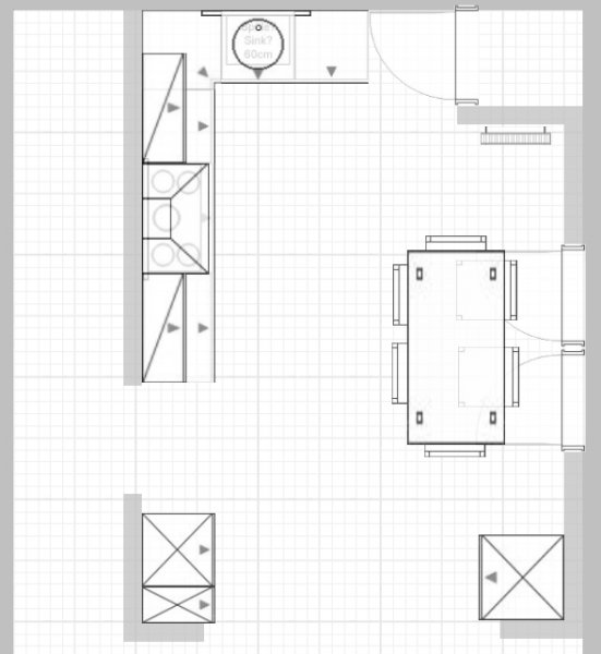 Der Zugang zu den Wasseranschlüssen ist geklärt? Weng die genau in der ecke liegen, bräuchte es sowieso einen Spüleneckschrank (einen graden Schrank mit Drehtür, der innen bis in die Ecke reicht, statt toter Ecke).