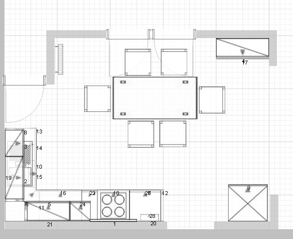 Allerdings eben auch den Kühlschrank planunten rechts und Backofen mit Schrank planoben rechts. Da paßt dann auch ein 45er Schrank statt nur einem 30er.