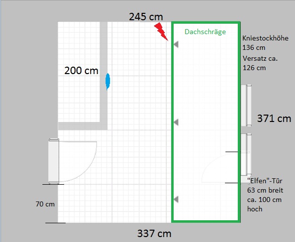 Mein Freund und ich sind beide 174cm gross, wie praktisch. Ich habe gestern Abend wohl im Eifer des Gefechts Giebel mit Gaube verwechselt. ;-) Wir haben Gaubenfenster, die ich im Planer auch in der ungefähren Größe und Position dargestellt sind. (Muss nochmal genau gemessen werden). @KerstinB Genau so wie du die Fenster dargestellt hast, sind sie auch. Nur ist in der Mitte leider noch ein Stück Wand. (Da fragt man sich schon, ob das ding auch wirklich was trägt).