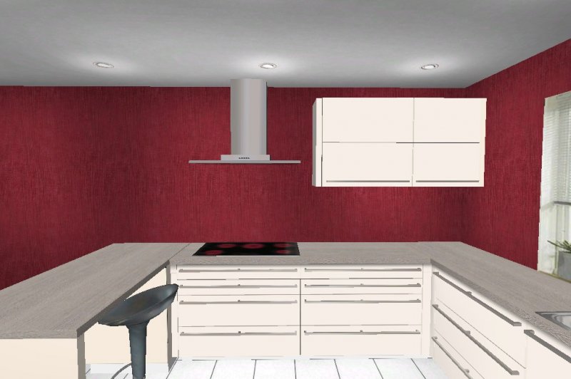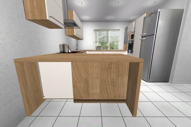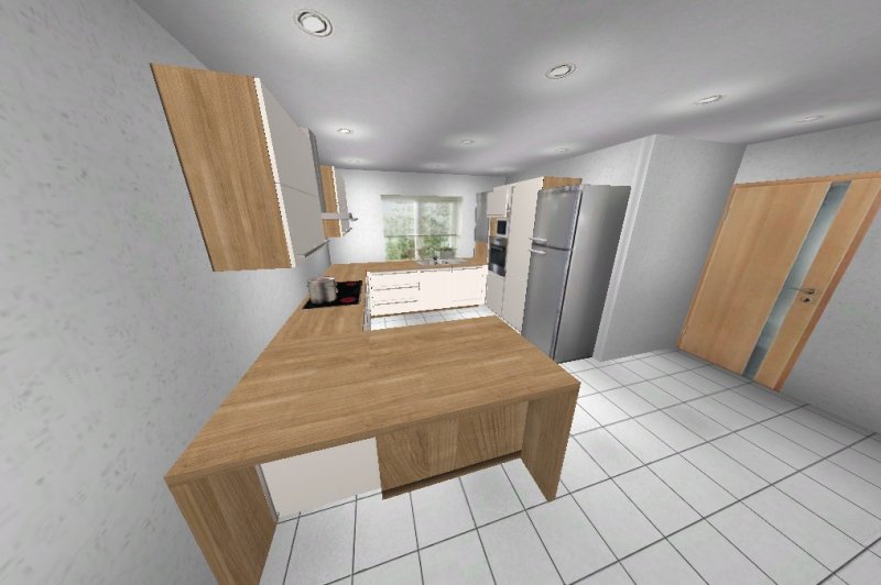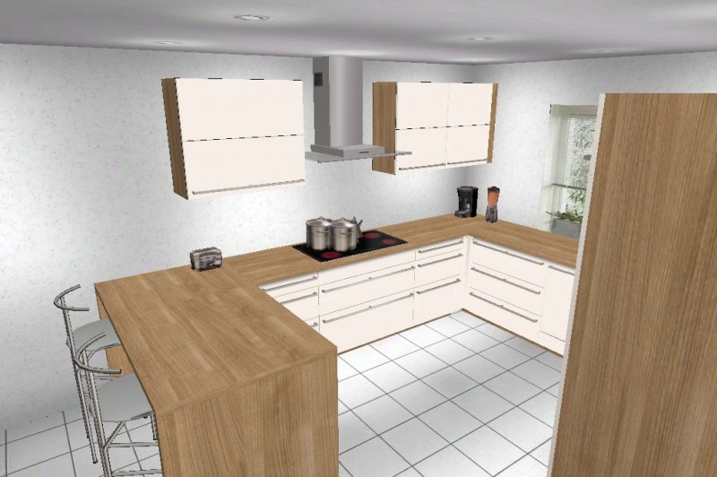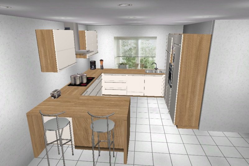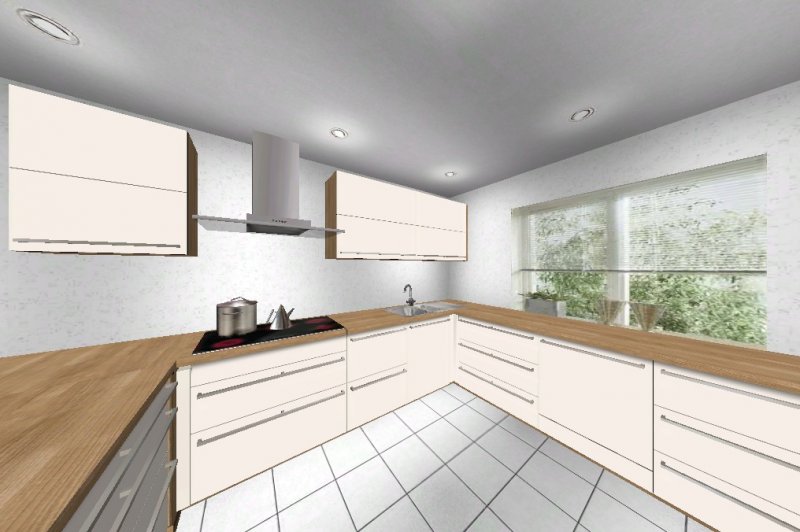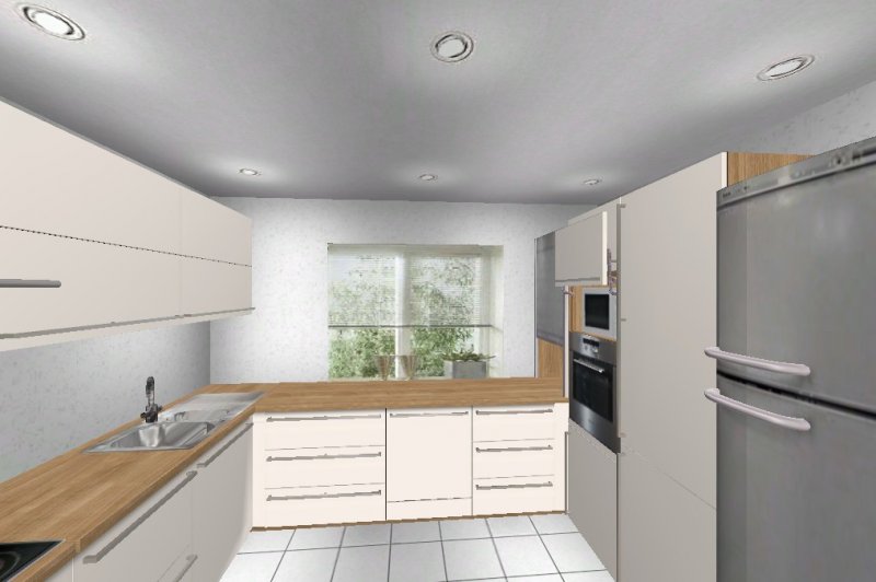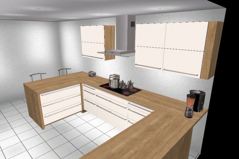 Nach mehrere Planungsänderungen habe ich mich für eine G- Küche entschieden. Eigentlich wollte ich schon eine Küche mit Insel, aber die Planungen, die ich gemacht habe, hat mich nicht sehr überzeugt.