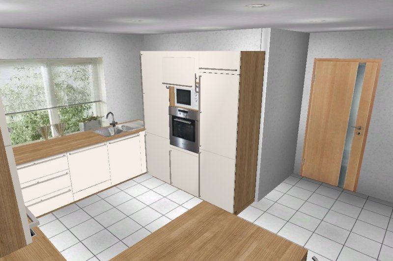 Ausserdem habe ich einen Voratschrank statt Apotheker geplant. Für den Kühlschrank bin ich noch nicht sicher, ob ich ein Einbaukühlschrank oder freistehend nehmen soll. Die freistehende finde ich viel größer. Zur Zeit habe ich Kühlschrank mit 3 Gefrierfächer und bin sehr zufrieden. Wenn ich einen ähnlich größer Einbaugerät finden würde, würde ich mehr zum Einbaugerät tendieren.