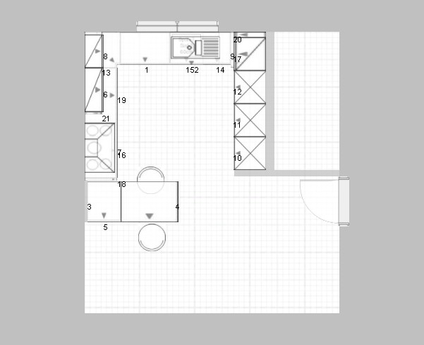 Nachdem ich einige Sachen hier gelesen habe, habe ich die Ecken als Tote Ecken geplant. Nur beim den Teil zum Essbereich, habe ich einen Schrank geplant, der sich vom Essbereich-Seite öffnet. Leider habe ich nicht geschaft den Front in Korpusfarbe in der Planung darzustellen.