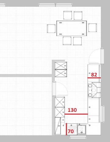 eine Seite der Küche wird offen sein (keine Wand), da geht es dann direkt ins Esszimmer/Wohnzimmer.