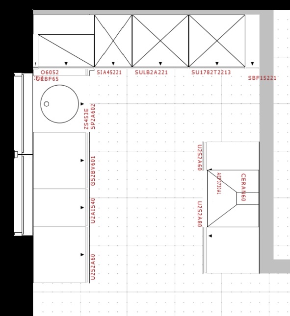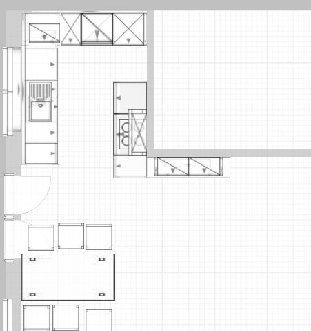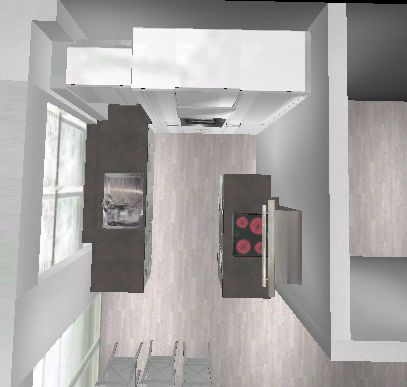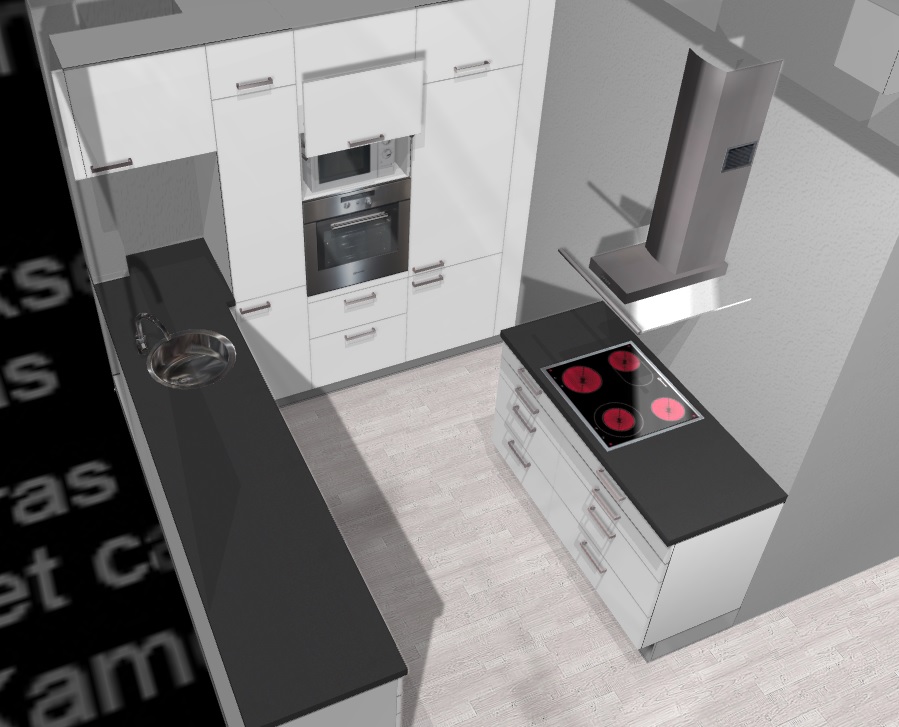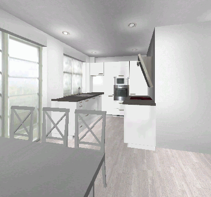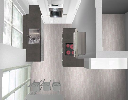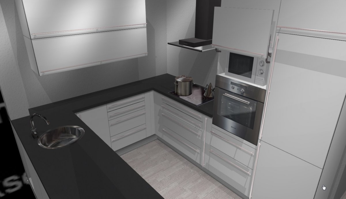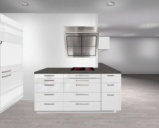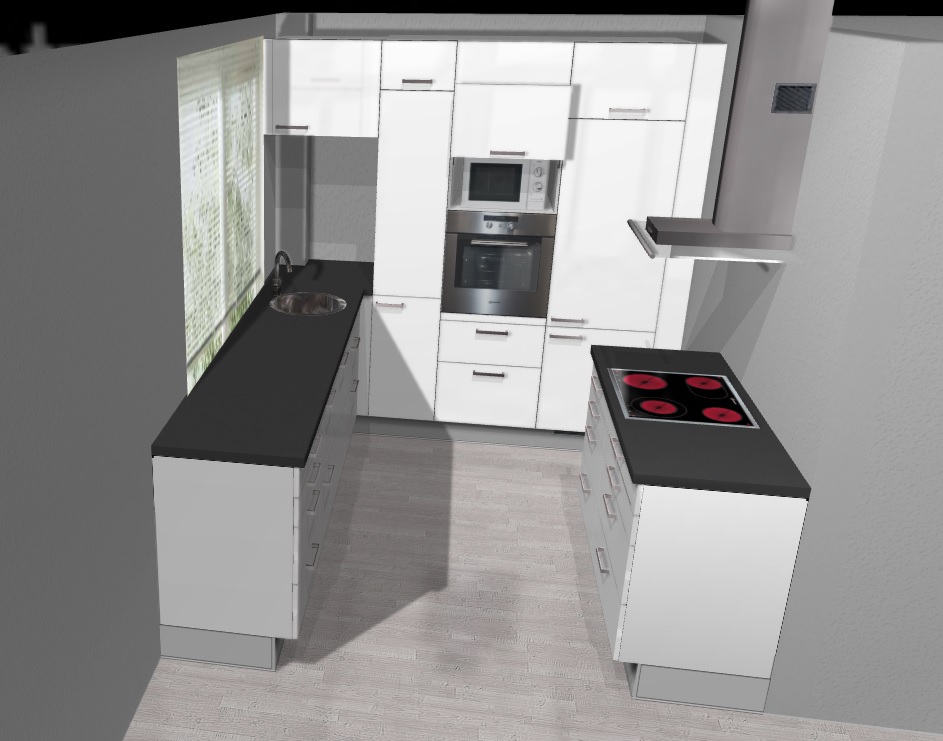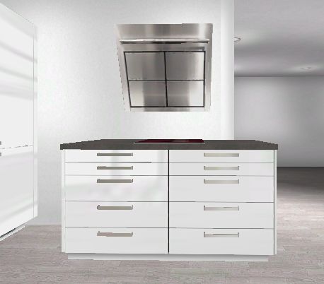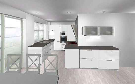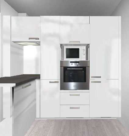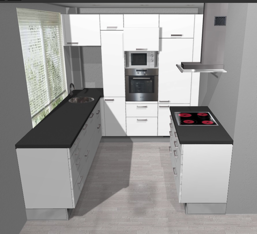 Dann wären sowohl neben dem Kochfeld, als auch neben der Spüle und an der Wand genug Arbeitsfläche. Außerdem könnte man mit dem Dunstabzug weit genug von den Hängern weg, damit man diese über die ganze planobere Wand ziehen und auch noch öffnen könnte. Eine Mikro passt ja auch unten in einen 60er Hänger rein als Einbaugerät, schön mittig vielleicht...
