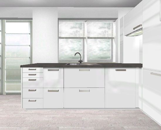 Da würde ich tatsächlich den Backofen in ein Highboard mit 140er Korpus auf die andere Seite zwischen die Fenster packen. IKEA hat sowieso keine Lifttüren, also fällt die Mikro in Lifttürenfach schonmal flach. Es sei denn, man holt sich die Beschläge im Fachhandel.