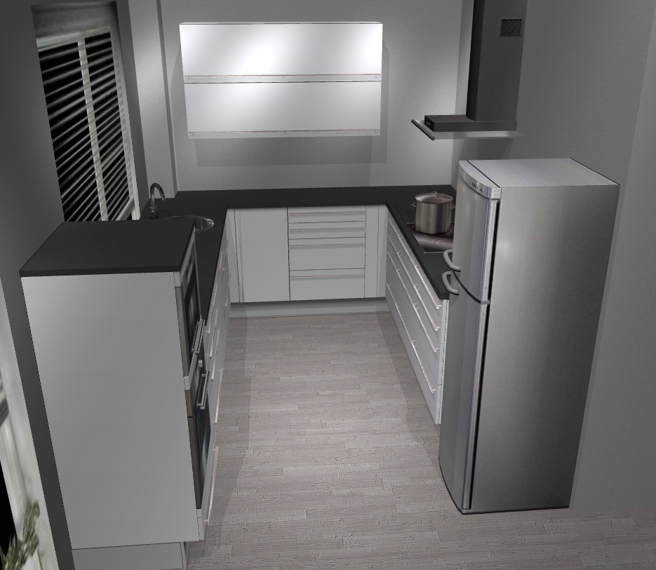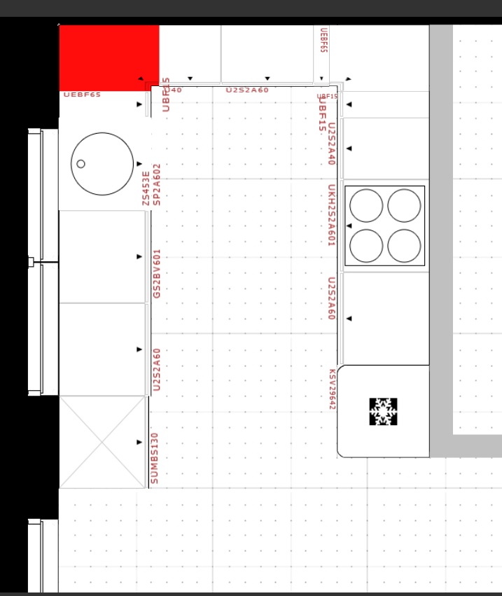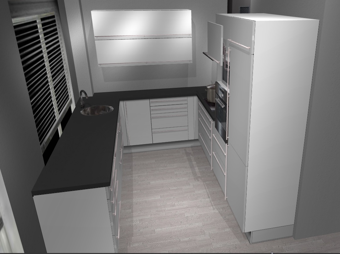 Theoretisch wäre dann auch der freistehende Kühli am Zeilenende möglich. Könnte man ja später einfach durch einen Einbauschrank mit Deckseiten ersetzen, falls jetzt noch das Budget dazu fehlt.