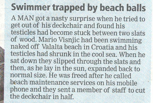 Den Witz kenne ich schon von vor 2-3 Jahren aus Email weitergeleitet von einer Freundin. Weiss ich nicht mehr genau, ob es genau dieselben Zeitungsausschnitte sind. Aber die erste Geschichte ruft irgendwie das Gedaechnis von der email hervor.