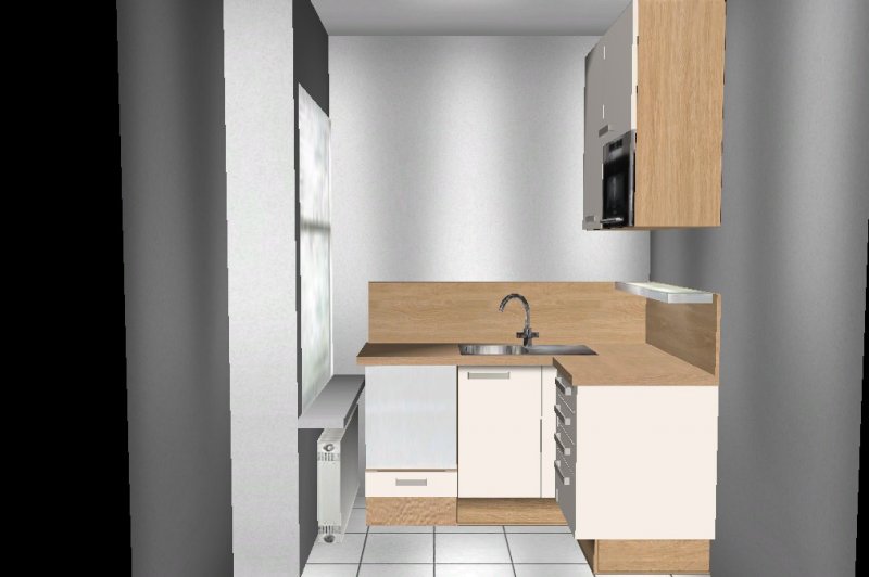 Bisher steht dem Fenster gegenüber eine 100cm Pantryküche und unter+vor dem Fenster (Brüstungshöhe 68 cm!) ist ein wenig Chaos