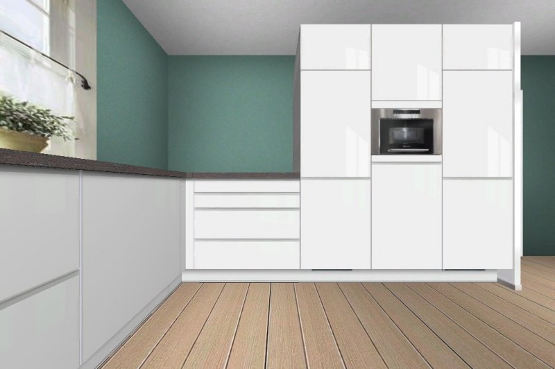 ich muss zugeben das Ihr recht habt, habe mal ein L mit Insel gebaut wobei ich nicht bis in die obere linke Ecke will mit den Hochschränken.