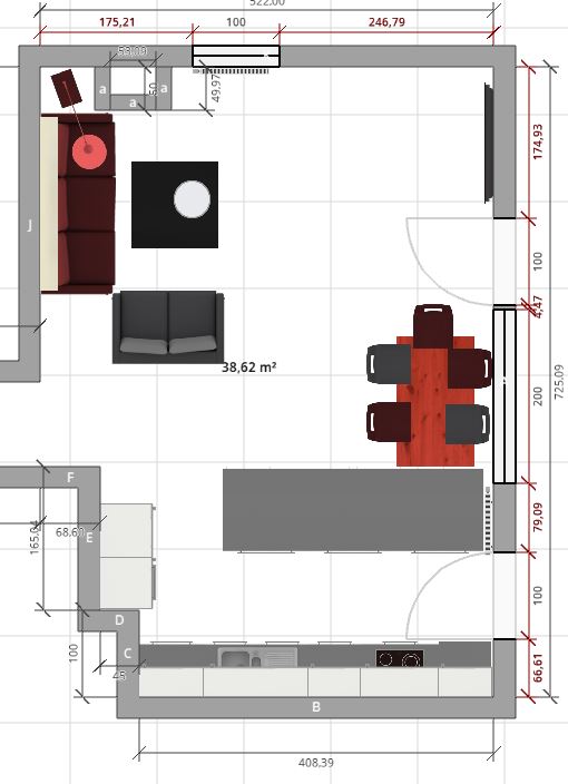 ich habe mittlerweile nun über 1 Jahr meine Küche und leider wird mir der Arbeitsplatz zum Schneiden, Vorbereiten etc. zu eng. Deshalb spiele ich mit der Überlegung, mir eine Kücheninsel (sprich ohne Spüle + Herd) nachträglich zwischen Küchenzeile und Tisch im Plan zu realisieren.