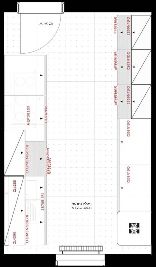 Zum Hintergrund: Es handelt sich um eine Küche für eine Mietwohnung, in der wir aber schon länger wohnen wollen. Da die Raumbreite gerade mal 2,57 m beträgt, kommt eine Lösung mit Essplatz nicht in Frage (zumindest habe ich im Planer nichts Vernünftiges hinbekommen).