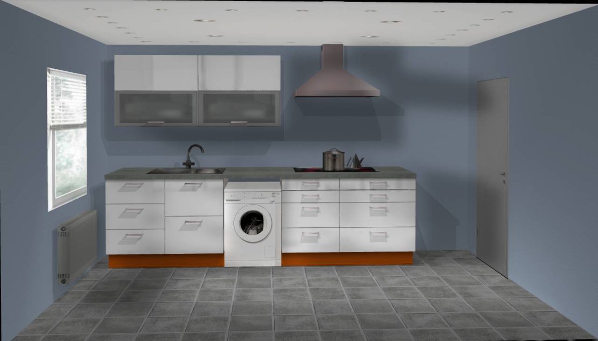 -Auf der Hauptzeile habe ich eine extratiefe Arbeitsplatte von 75 cm eingeplant, allerdings habe ich keine Ahnung ob das praktikabel ist und ob es auch Möbel mit größerer Tiefe gibt, da ich nicht unbedingt nur Luft umbauen möchte. (Hersteller wanted).