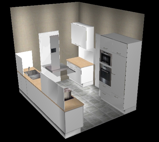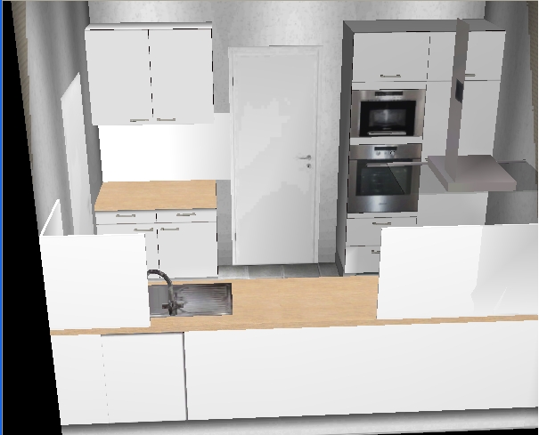 Es sei noch erwähnt, dass die beiden Türen Schiebetüren werden, die hab ich im Alnoplaner leider nirgends entdecken können. Nach unten ist keine Tür/Wand, dort ist die Küche offen.