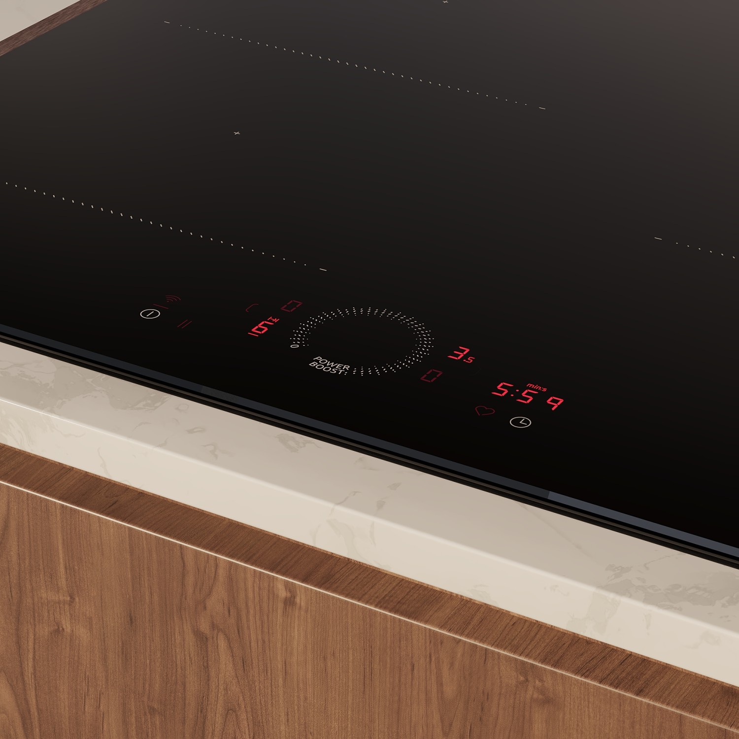 Die innovative Twist Touch® Steuerung ist ein neuer, digitaler Leuchtring auf dem Kochfeld, der sich mit einem Tipp oder einer kreisförmigen Fingerbewegung entlang des Rings einstellen lässt. Damit führt er buchstäblich im Handumdrehen von der Leistungsstufe 1 direkt und schnell bis zur Powerstufe und auch wieder zurück. Twist Touch® ist die ausgeklügelte Alternative zum magnetische haftenden Twist Pad Flex® in der Bedienung der neuen NEFF Collection Kochfelder.