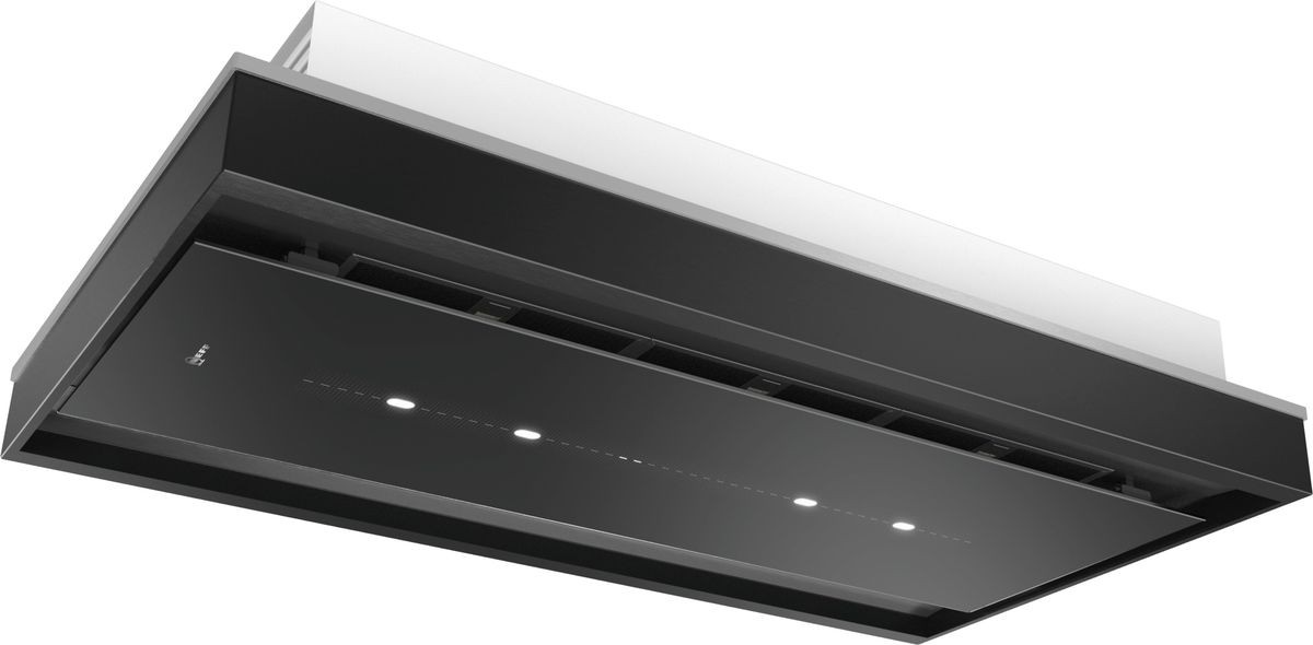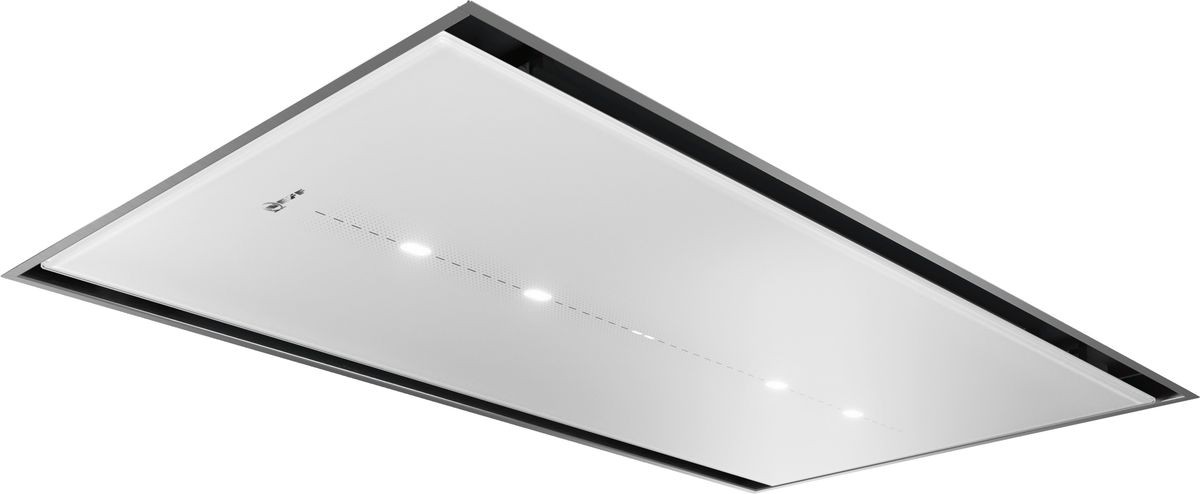 Der Abzug von Dampf und Gerüchen von der Decke aus hat viele Vorteile. Dezent und unaufgeregt integriert sich die Haube trotz imponierender Abmessungen in den Raum, je nach Modell bündig eingebaut oder aufgesetzt. Nichts stört die Bewegungsfreiheit beim Kochen und der freie Blick zwischen Kochfeld und Umgebung verleiht der Küche eine neue Großzügigkeit. Ganz einfach durch Plug-and-Play montiert, sind die Deckenlüfter in Nullkommanichts betriebsbereit. Ein kraftvoller Motor sorgt stets für saubere Luft. Im Herbst 2019 erweitert NEFF sein Portfolio an Deckenlüftern nun um drei besonders flache Varianten: Statt der üblichen 30,5 cm Höhe sind die neuen Geräte nur 18 cm hoch. Das schenkt Freiheit bei der Planung: Da die