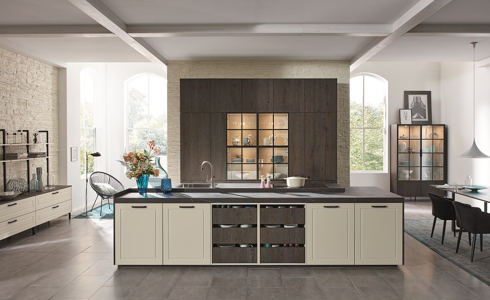 Als neue wichtige Trendfarbe ist gleich ein Komplettangebot für Korpus innen und außen vorhanden und wird in den Ausführungen: Melaminharz, Direktlack, Mikro- und Samtlack, Hochglanzlack, Mattlack und auf Holz angeboten.