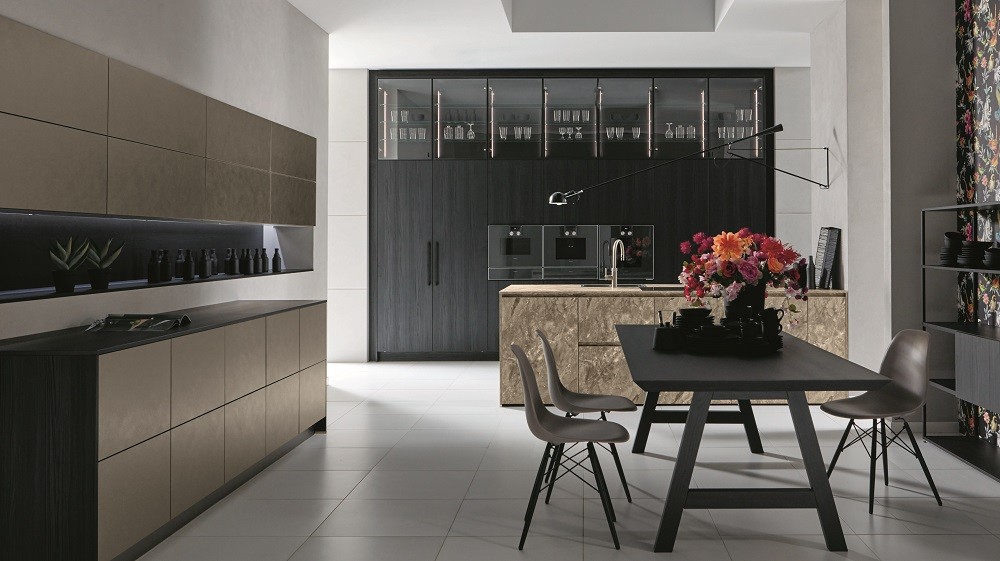 Aus der Vielfalt des hochwertigen Angebotes überragen vor allem diejenigen Modelle, die mit natürlichen oder naturgetreu reproduzierten Oberflächen begeistern. pronorm setzt z. B. mit Metall in Gold und dunklem Stahl