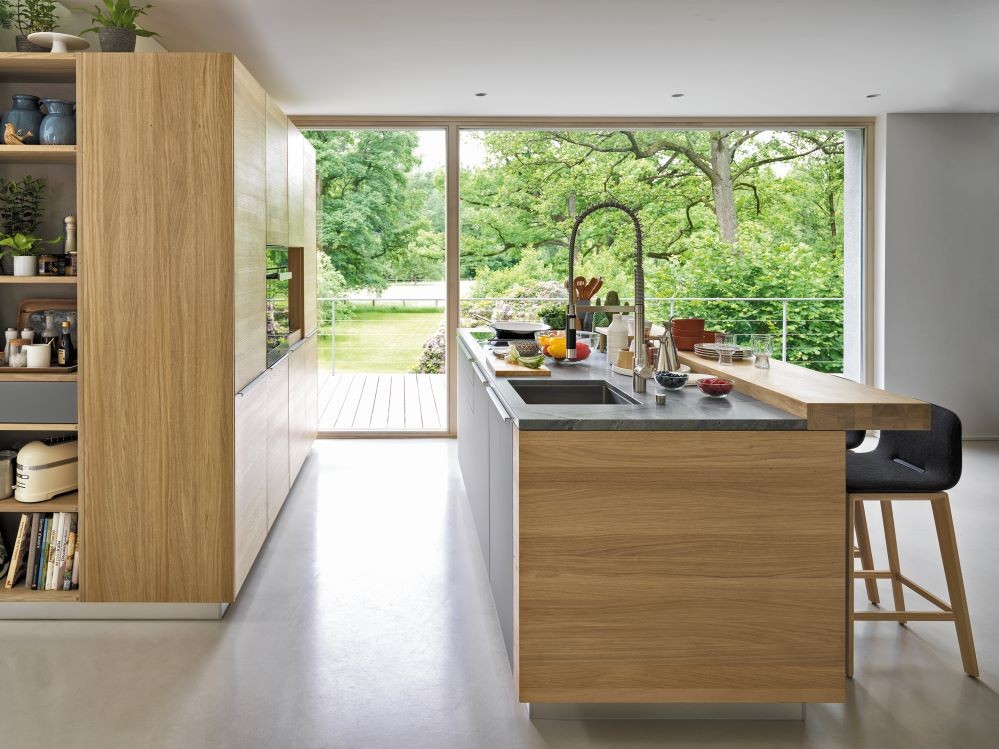 Neben der außergewöhnlichen Ästhetik der linee Küche spielen auch die Themen Komfort und Ergonomie eine wichtige Rolle. Innovative Funktionen erleichtern den Alltag und das Arbeiten in der Küche. Ein leichter Druck genügt, um Schubladen oder Türen zu öffnen. Und hinter edlen Naturholzoberflächen verbergen sich praktische Steckdosen.