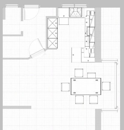 In einer recht kleinen Reihenhausküche (Küchenanteil ca. 8,2 qm) sollen neben Staubsauger/Besenschrank auch ein Sitzplatz zum Schnippeln untergebracht werden.