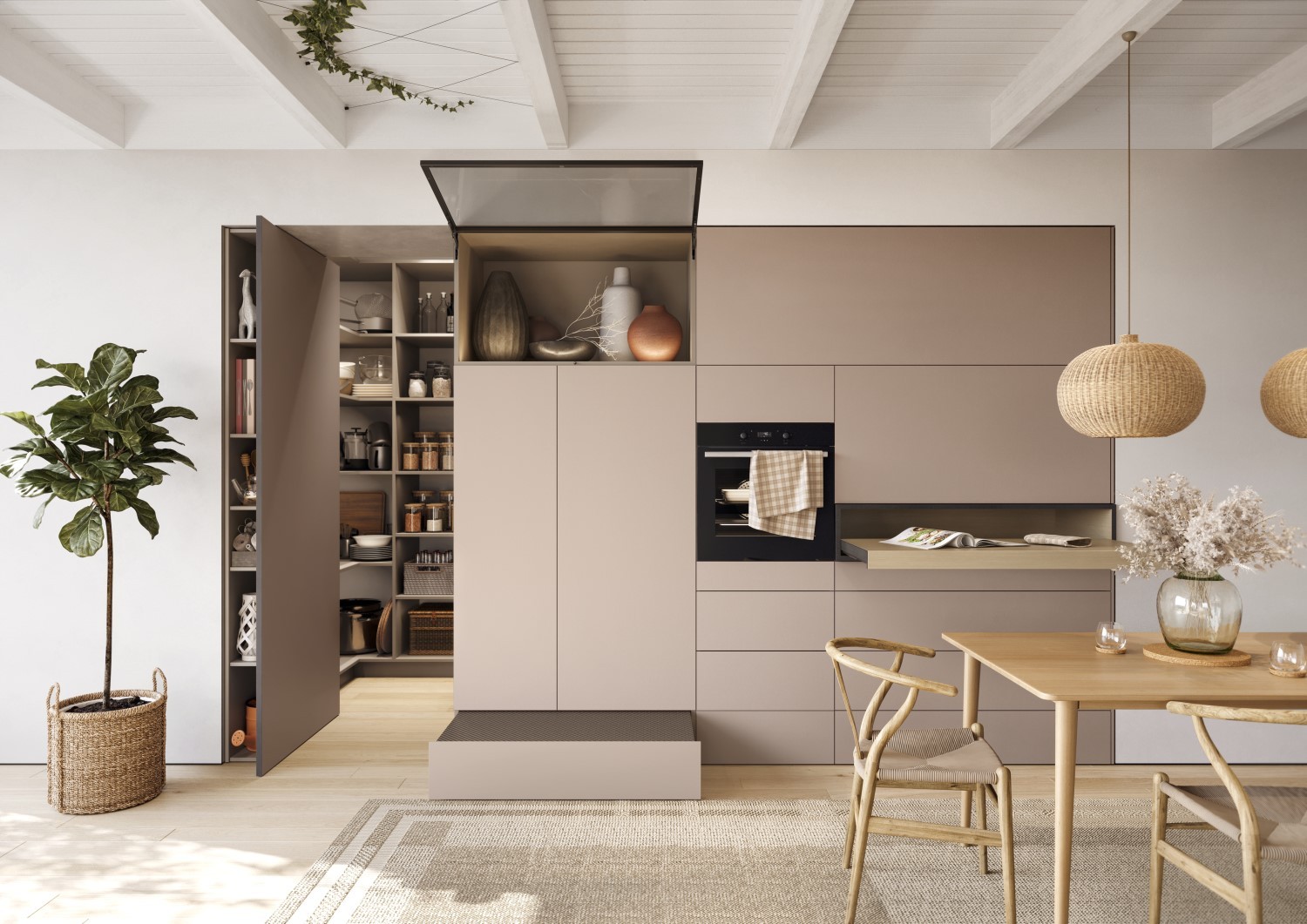 Versteckte Speisekammern, hilfreiche Sockellösungen oder elegante Klappen: Beschläge von Blum machen eine ganze Reihe von besonderen Überraschungen in Küchen möglich. Diese sind sowohl außergewöhnlich als auch praktisch.