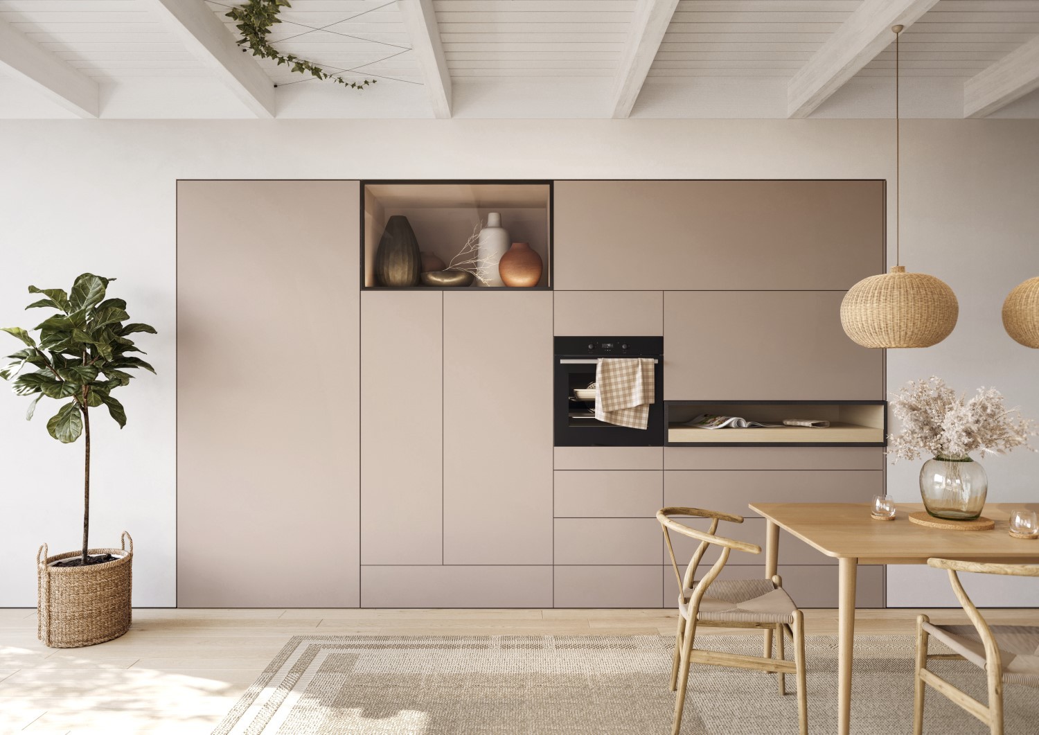 Apropos Oberschränke: Auch hier gibt es die Möglichkeiten für versteckte Details. So verschmilzt der innovative Klappenbeschlag AVENTOS HKi mit dem Möbel und ist im geschlossenen Zustand auch bei Glasfront mit dünnem Aluminiumrahmen nahezu unsichtbar. Der Einsatz von Hochklappen ist generell eine gute Art, um optisch Akzente zu setzen und dem eigenen Wohnraum ein einzigartiges Flair zu geben. Unterschiedliche Oberflächenmaterialien, Größen und Öffnungsmechanismen bringen Abwechslung und eröffnen neue Gestaltungsmöglichkeiten. Auch moderne, asymmetrische Anordnungen sind für den individuellen Wohntraum mit der Klappenfamilie AVENTOS top von Blum realisierbar. Überraschende Details sind also auf verschiedene Arten möglich. Der Fantasie sind bei der Küchengestaltung praktisch keine Grenzen gesetzt.