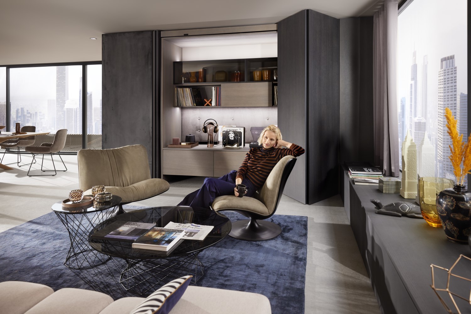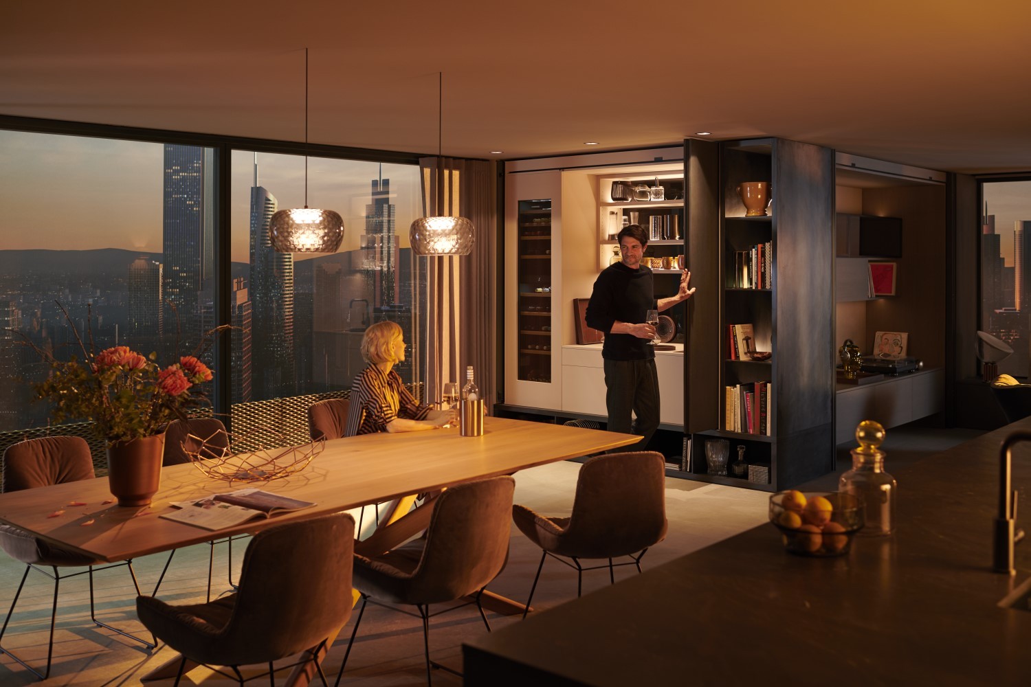 Durch Antippen der Einzel- bzw. Doppeltüren gibt es den dahinterliegenden Raum zur Nutzung frei. Was sich dort versteckt? Außergewöhnliche Wohnideen, die sich als stilvoller Stauraum, gut organisierter Arbeitsplatz oder schicke Hausbar entpuppen. Beispiele gefällig?