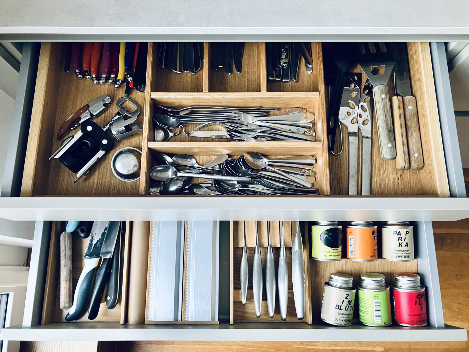 grifflos, aktuell hellgraue Arbeitsfläche